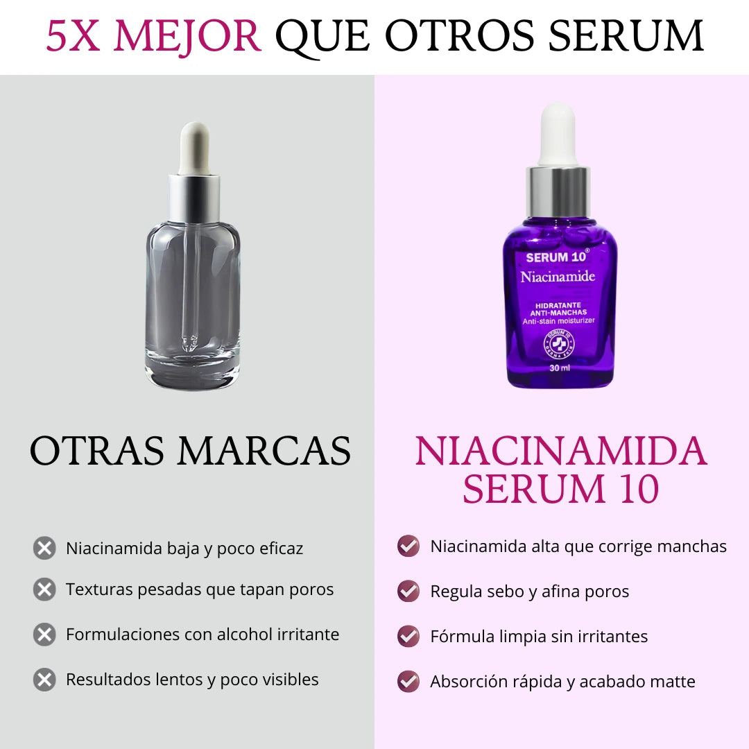 Recupera el brillo natural de tu piel. La niacinamida al 10% ayuda a reducir manchas oscuras y a unificar el tono del rostro, revelando una piel más clara, radiante y pareja.